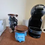 This apartment comes with an equipped kitchenette with a refrigerator and an oven.